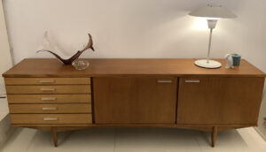 -Distribución: dos puertas con baldas al interior y cinco cajones.