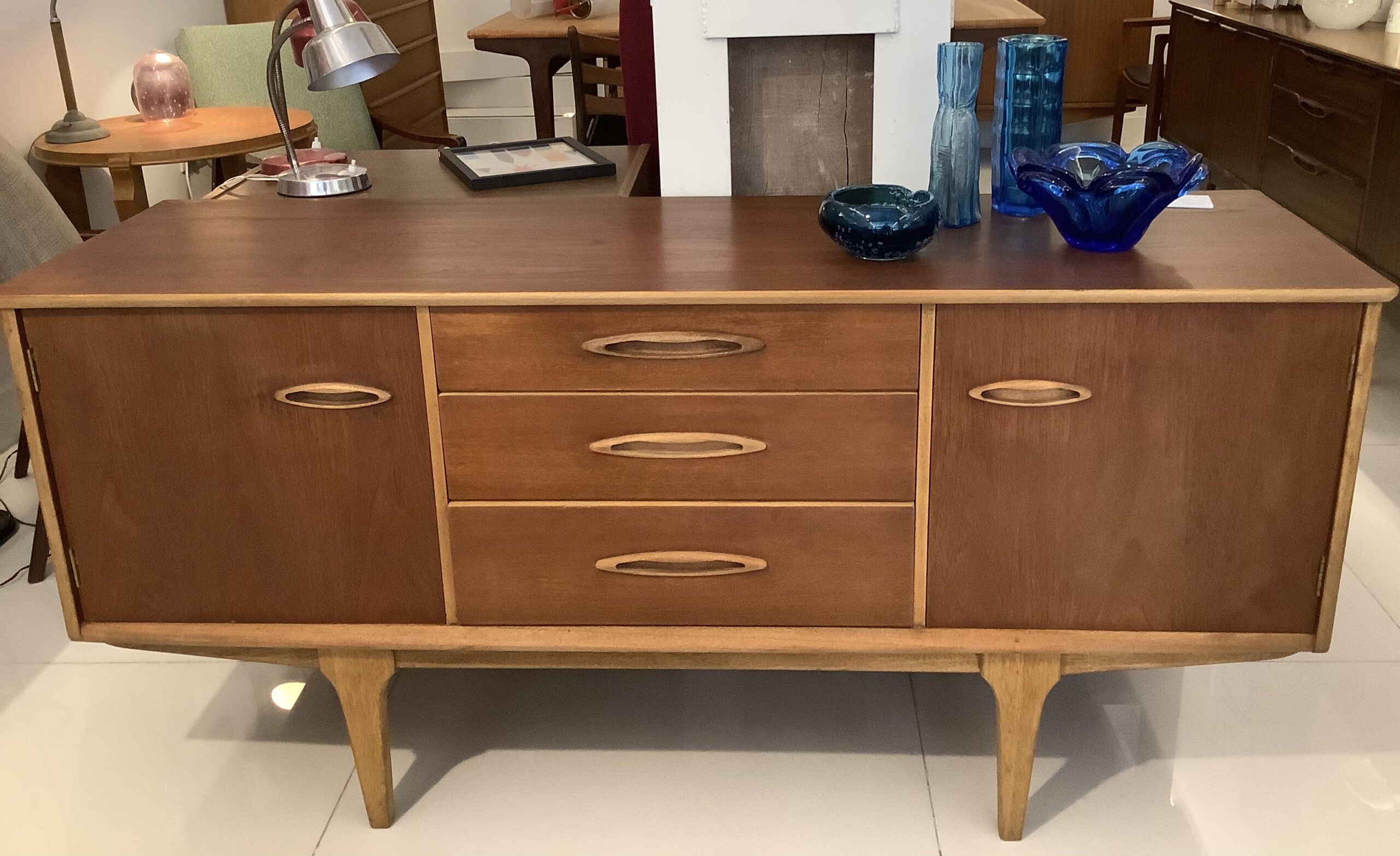 -Distribución: dos puertas con baldas al interior y tres cajones al centro.
