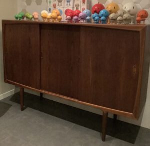 -Distribución: tres puertas de corredera con baldas y cajones al interior.