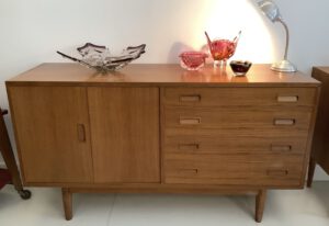 -Distribución: una puerta doble con baldas al interior y cuatro cajones.
