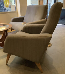 -Detalles: pequeño tamaño del sofá y inclinación de las patas de madera.