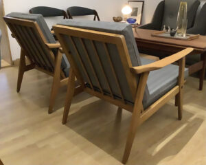 -Tapicería: renovado todo el interior y la tela en color caris con unas finas rayas.